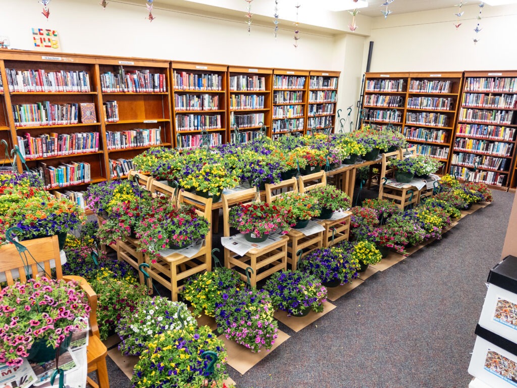 Get a gift for a special mom and support the library with a lovely 10-inch Million Bell (mini petunia) hanging basket in assorted colors.